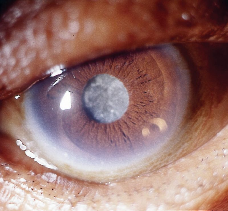 Катаракта-это болезнь глаз, когда хрусталик, который в норме прозрачен, меняется состав и появляются нерастворимые в воде вещества, которые образовывают помутнения.